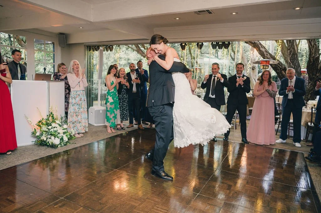Set against the lush spring backdrop of Malibu, this intimate wedding at Calamigos Ranch’s Birchwood Room was nothing short of amazing—and so much fun. The celebration was intentionally on the smaller side, with the couple surrounding themselves with only their favorite people, creating a warm, relaxed, and joy-filled atmosphere. As the sun dipped low, guests enjoyed cocktails and dinner on the Birchwood Room’s stunning outdoor deck, soaking in the gorgeous evening air and natural beauty that makes this venue so special. Their music taste was wonderfully eclectic, but Country reigned supreme, setting the tone as the main soundtrack throughout Cocktail Hour and Dinner. Once the dance lights kicked on and the floor officially opened, everyone made their way inside, where DJ Brian took over the decks and brought the energy up to another level. With his incredible skills and instinct for the crowd, the dance floor stayed packed, turning an already beautiful Malibu evening into an unforgettable celebration.