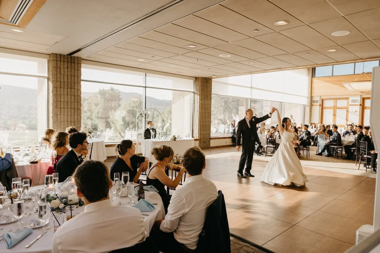 Inside the elegant Grand Ballroom with its sweeping windows and soaring ceilings, guests enjoyed dinner and heartfelt toasts. Outside, autumn breezes and golden hour light created picture-perfect moments by the lake and gazebo. From cocktail hour to last call, the atmosphere was nothing short of joyful — a reminder of why fall weddings at Wood Ranch are such a treasured experience.